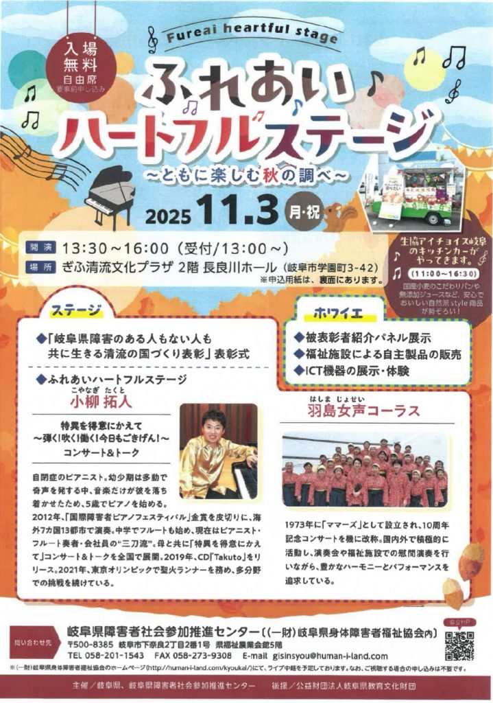 岐阜で行われたハートフルステージに呼んで頂き、コンサート&トークをしてきました。